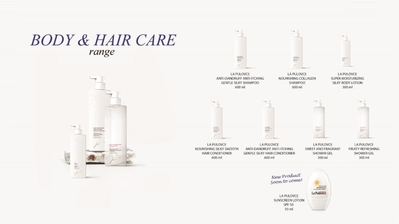Les produits de soins capillaires La Pulovce visent à soulager et apaiser le cuir chevelu sec et sensible, soit avec de l'extrait de thym, soit avec de l'extrait de fleur de Matricaria. Les gels douche La Pulovce hydratants au miel, ou lissant la peau à l'extrait de pomme.